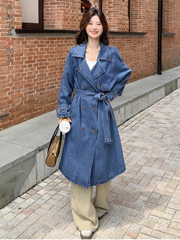 여성용 데님 트렌치 코트, 루즈 데님 코트, 바람막이 패션, 와일드 롱 트렌…