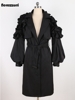 Nerazzurri 여성용 런웨이 프릴 카키 롱 트렌치 코트, 우아한 시크,…