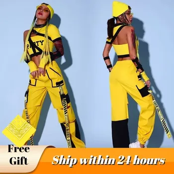 재즈 댄서 복장 여성 힙합 댄스웨어, 치어리더 유니돔 무대 코스튬 노란색 카…