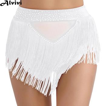 여성용 라틴 댄스 스커트, 샤이니 라인스톤 태슬 반바지, 삼바 룸바 차차 밸…