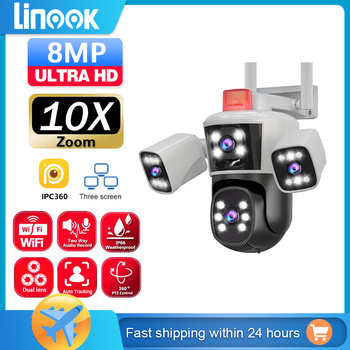 Linook 12MP, 6K, 3 렌즈, 와이파이 감시 카메라, CCTV 야…