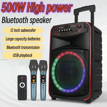 고출력 블루투스 스피커, 휴대용 야외 가라오케 트롤리, 무선 듀얼 마이크