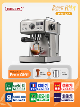 HiBREW 반자동 에스프레소 커피 머신, 온도 조절 가능, 58mm 포타필…